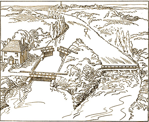 The lock-gates opened as he spoke, and out we went, and on. And as for Windsor, he said nothing till I lay on my oars (for I was sculling then) in Clewer reach, and looking up, said, “What is all that building up there?”